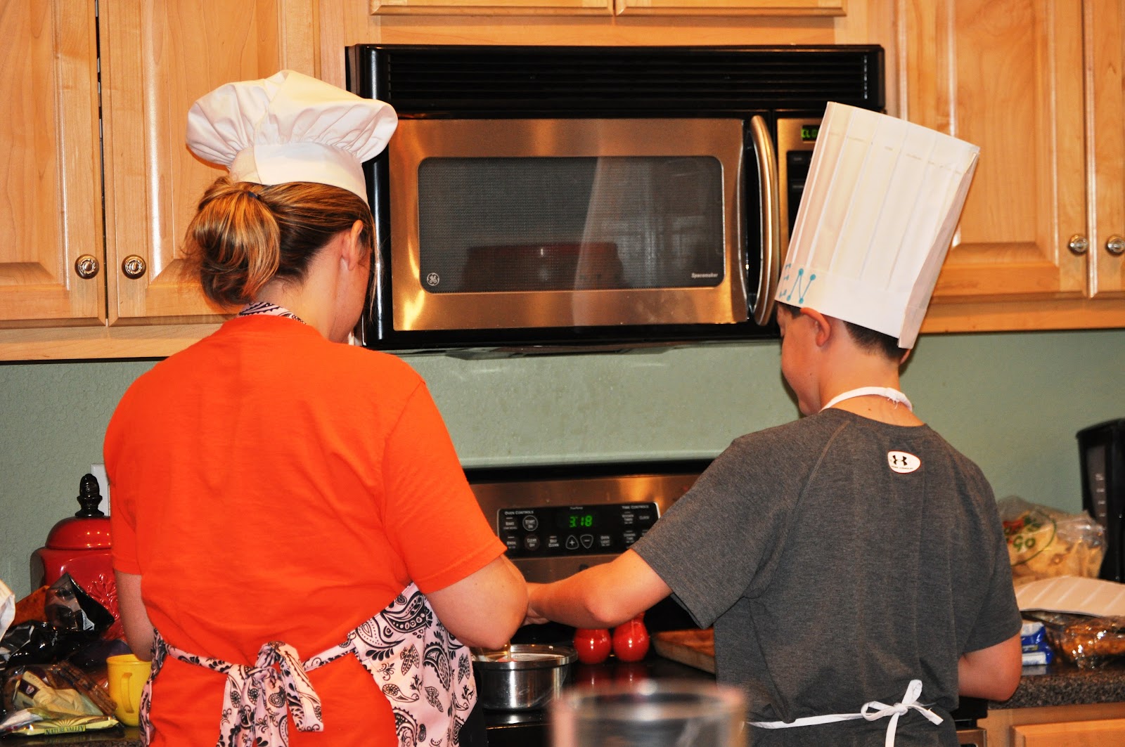 From three to five they all went to “Kid Cooking” with Cortney. They made lots of fun stuff and had a blast. They brought lots of goodies back home they could enjoy for a few days. Susan May had brought over some chefs hats for them to wear. They looked so awesome.